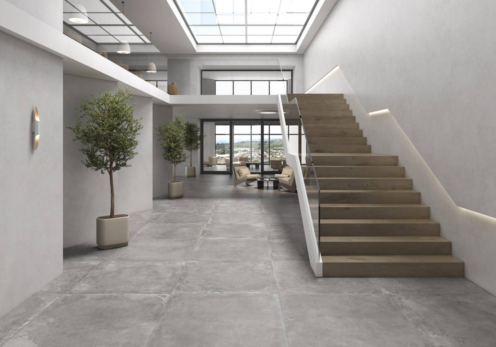 Nos carrelages en grès cérame captivent par leur esthétique sophistiquée, reproduisant avec une précision saisissante l'effet béton moderne.