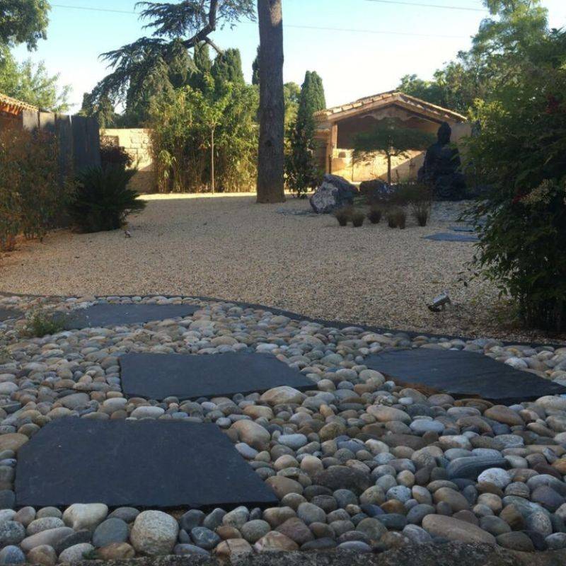 Les pas japonais en ardoise permettent de créer des cheminements dans le jardin tout en gardant un aspect naturel. Résistants aux intempéries et antidérapants, ils sont aussi esthétiques que fonctionnels. Leur forme irrégulière et leur teinte foncée s’adaptent parfaitement aux ambiances zen, contemporaines ou rustiques. Posés directement sur la pelouse, les graviers ou les galets, ils offrent un accès élégant à vos différentes zones extérieures sans alourdir l’ensemble visuel.