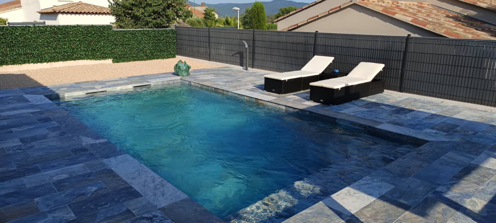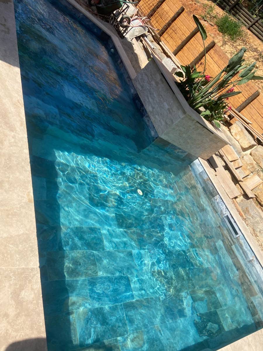 Disponible en plusieurs formats et finitions, le Bali Blue s’adapte aux différents styles de bassins et permet une pose harmonieuse sur les parois comme sur le sol. Son rendu miroitant sous l’eau accentue l’effet lagon, offrant un espace de baignade luxueux et apaisant.