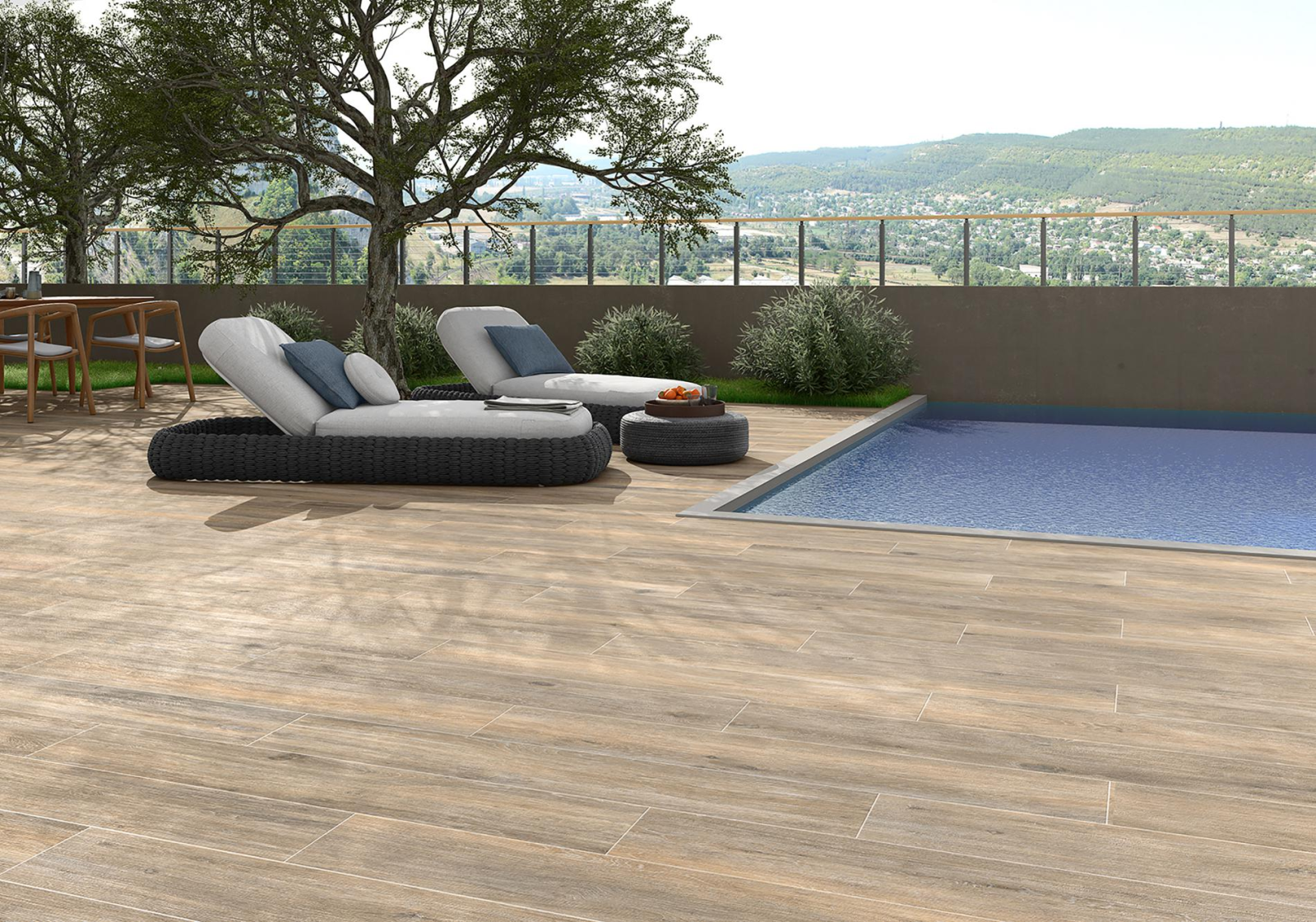 Transformez votre espace extérieur à Toulon avec notre sélection exclusive de carrelages bois effet parquet chez PériMètre. Nous vous proposons une gamme raffinée, alliant la chaleur du parquet à la durabilité du carrelage, pour sublimer vos espaces extérieurs avec style.